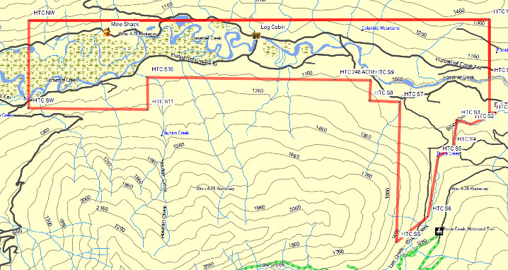 The only public road on the property is the Horsethief Creek Forestry Service Road.